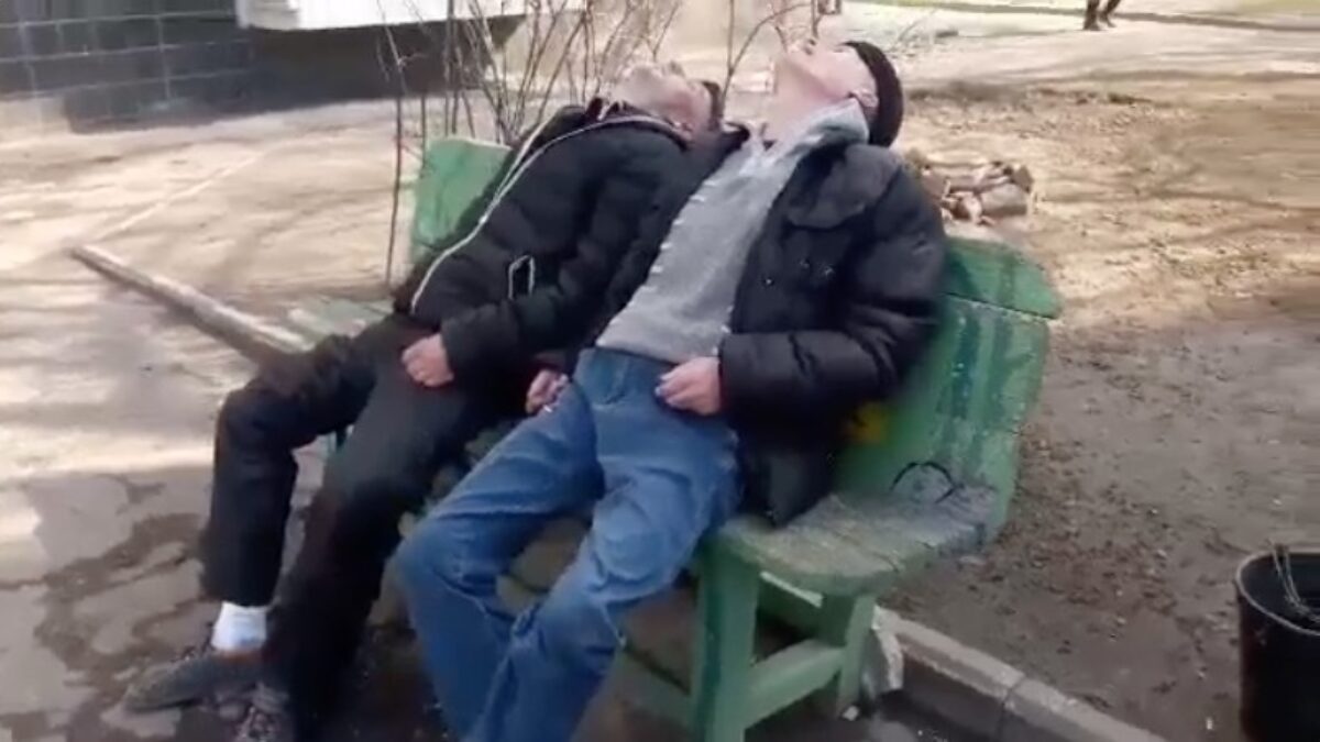 Twee Russische kameradski's genieten gebroederlijk van hun vrije woensdagmiddag Bizar