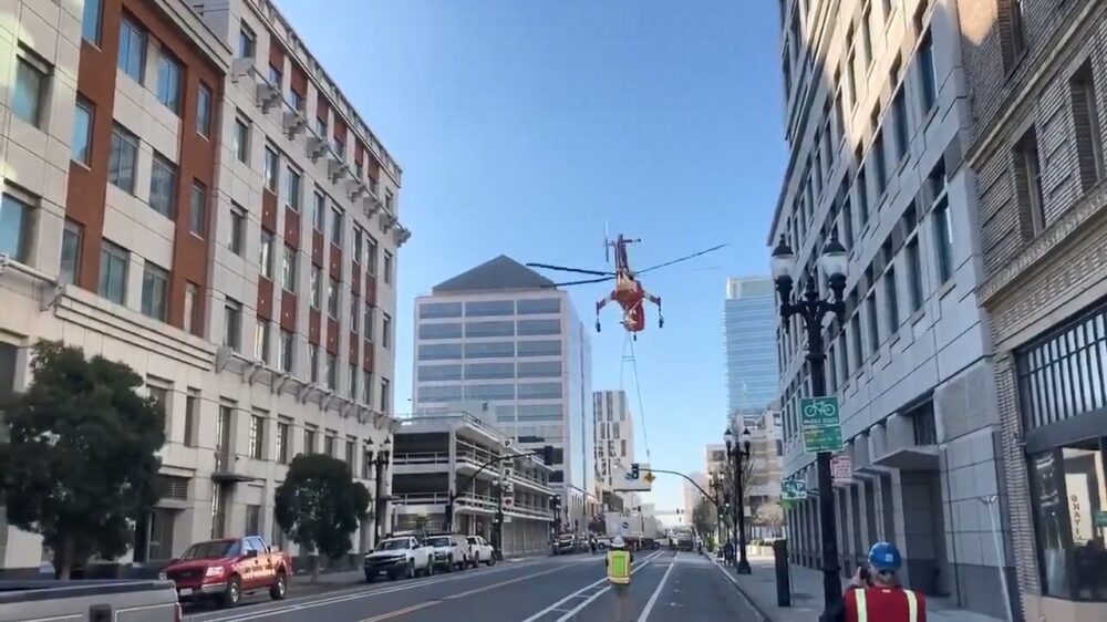 Iets ging er zaterdagochtend niet helemaal goed toen er een enorme industriële airconditioning vanuit een helikopter ongeveer 12 meter in de binnenstad van Oakland Street op de grond plofte. Jij als opzichter weet vast wat er fout ging, dus roept u maarrr.