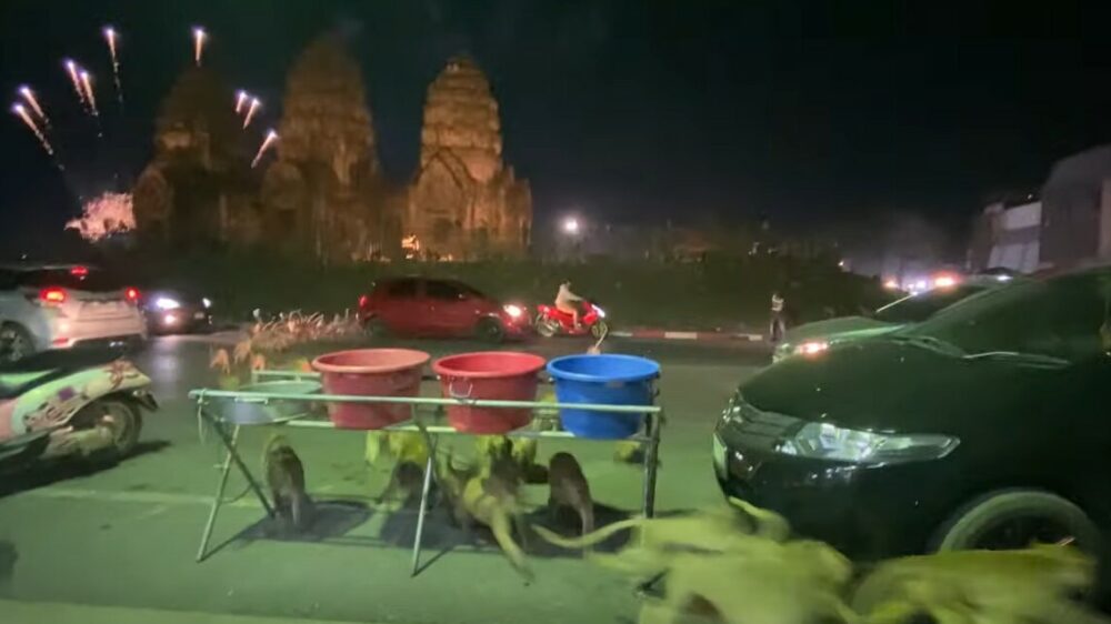 In de Thaise stad Lopburi worden apen door de Thai als ‘heilige dieren’ beschouwd en ze trekken elk jaar duizenden toeristen naar de stad. Tijd om dat eens te vieren met wat vuurwerk!