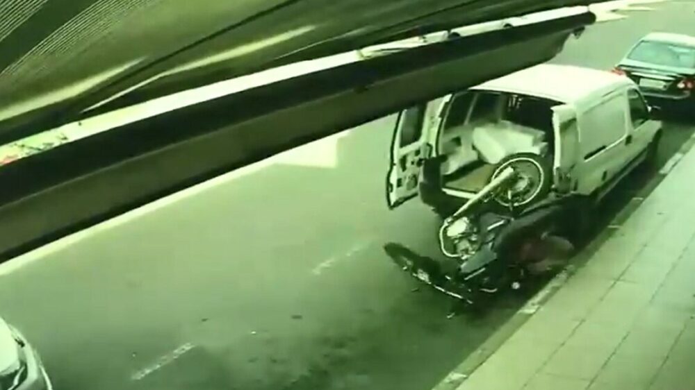 Oude doos: motorrijder ziet een gaatje en gaat er helemaal voor