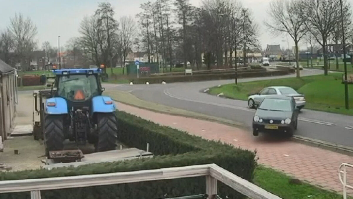 Sportief een bochtje pakken moet kunnen natuurlijk, maar dan moet je wel een beetje kunnen sturen. Iets dat deze jongeman klaarblijkelijk nog niet helemaal onder de knie had, want hij parkeert hem daarna keurig in de plomp.