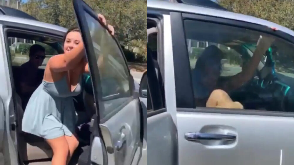 Chick met flinke snoeptafels trekt autodeur dicht met vingers er nog tussen Fails