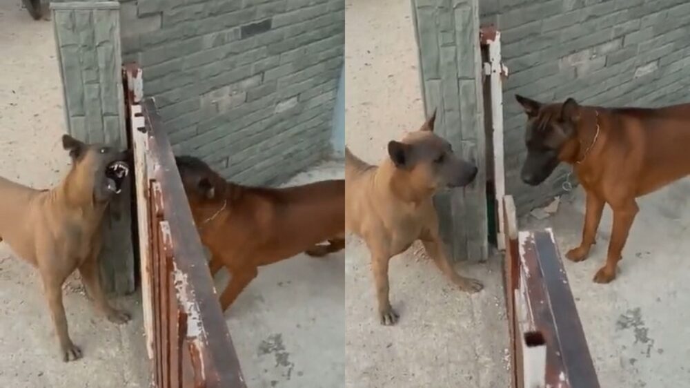 Twee blaffende honden voor een poort doet ons op de één of andere manier heel erg denken aan de internetdiscussies van tegenwoordig. Herkenbaar?