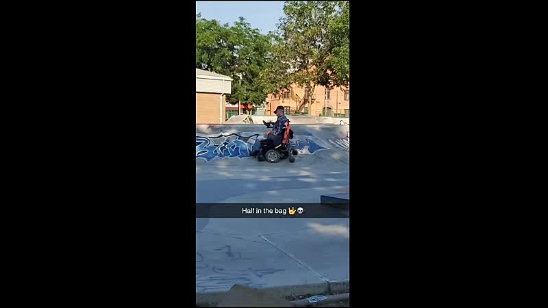 Met een borrel op denk je dat je alles kunt. Met je scootmobiel over de skatebaan bijvoorbeeld, al gaat dat deze man eigenlijk nog best aardig af. Do a kickflip!
