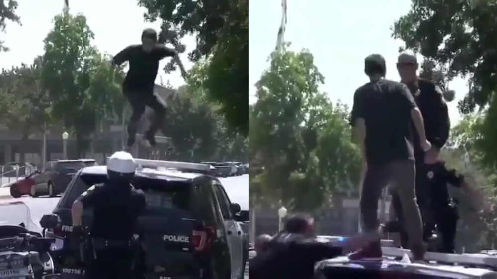 Amerikaanse agenten trekken politieauto-sloper hardhandig naar de grond Bizar