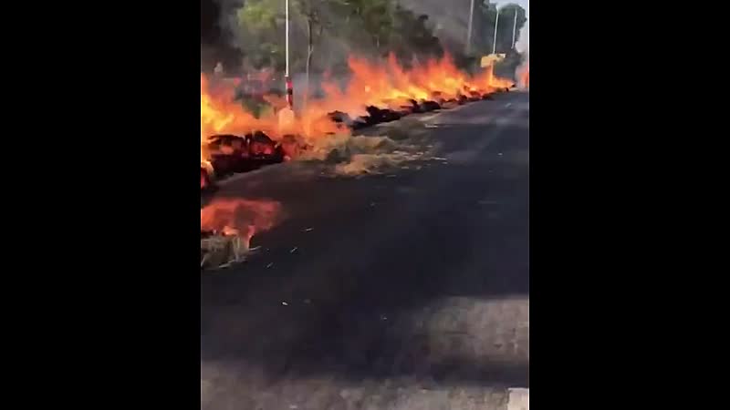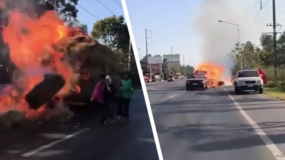 Aan de kant: Lucifer scheurt met een aanhanger vol brandend hooi voorbij