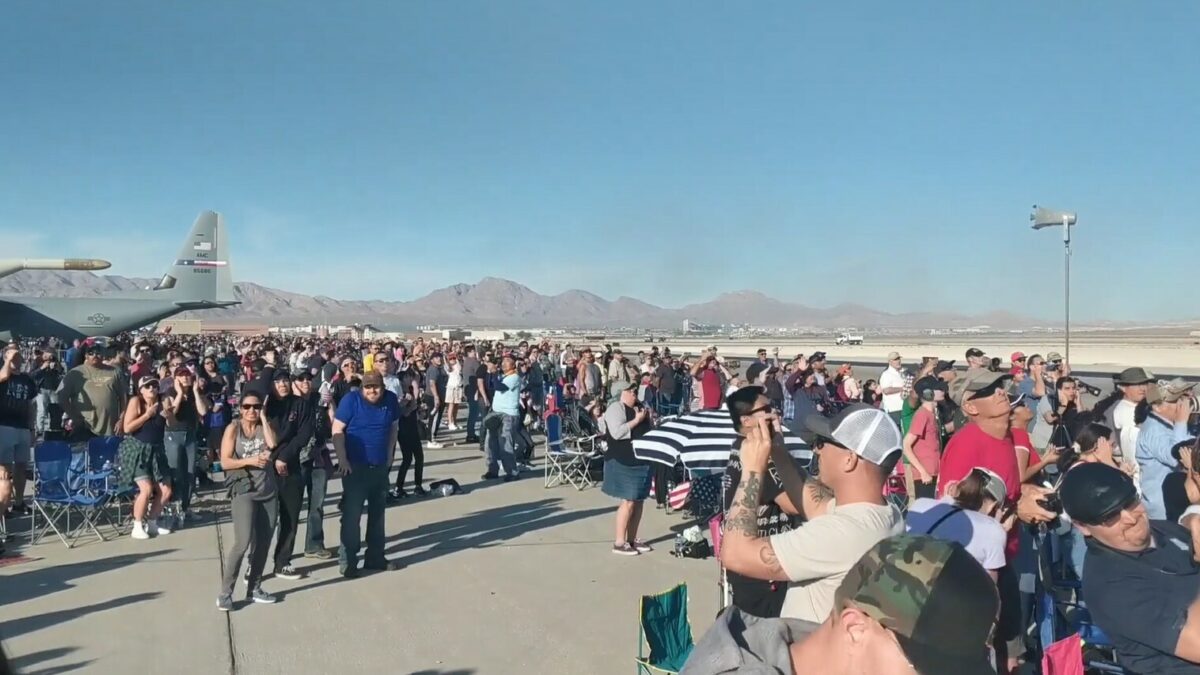 Toeschouwers bij een #vliegshow op vliegbasis Nellis Air Force Base in de Amerikaanse staat Nevada worden heerlijk getrolled door een laagvliegend vliegtuig. Woesjjjjjjj!