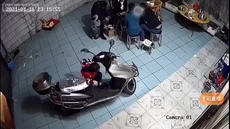 Koter start scooter en rijdt gehele Chinese rijsttafel ondersteboven