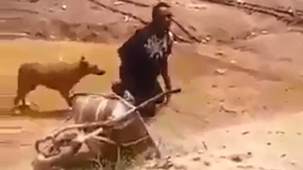 Werknemer van de maand heeft moeite om kruiwagen onder controle te krijgen