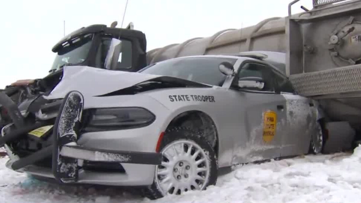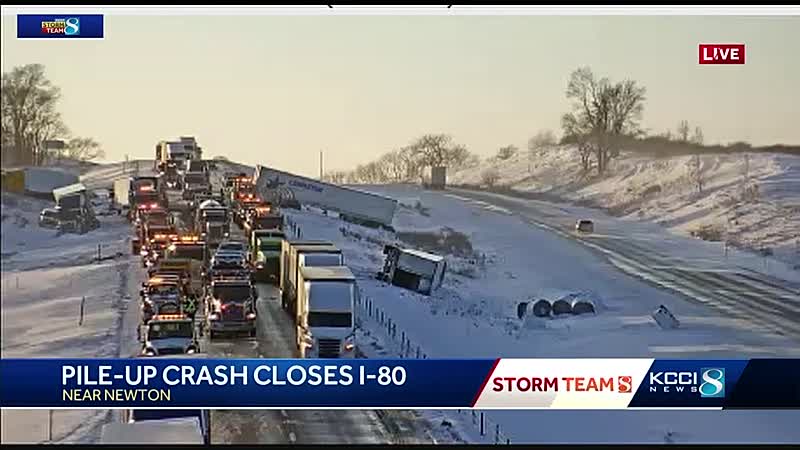 Bizarre kettingbotsing van 40 auto's na sneeuwstorm in Iowa
