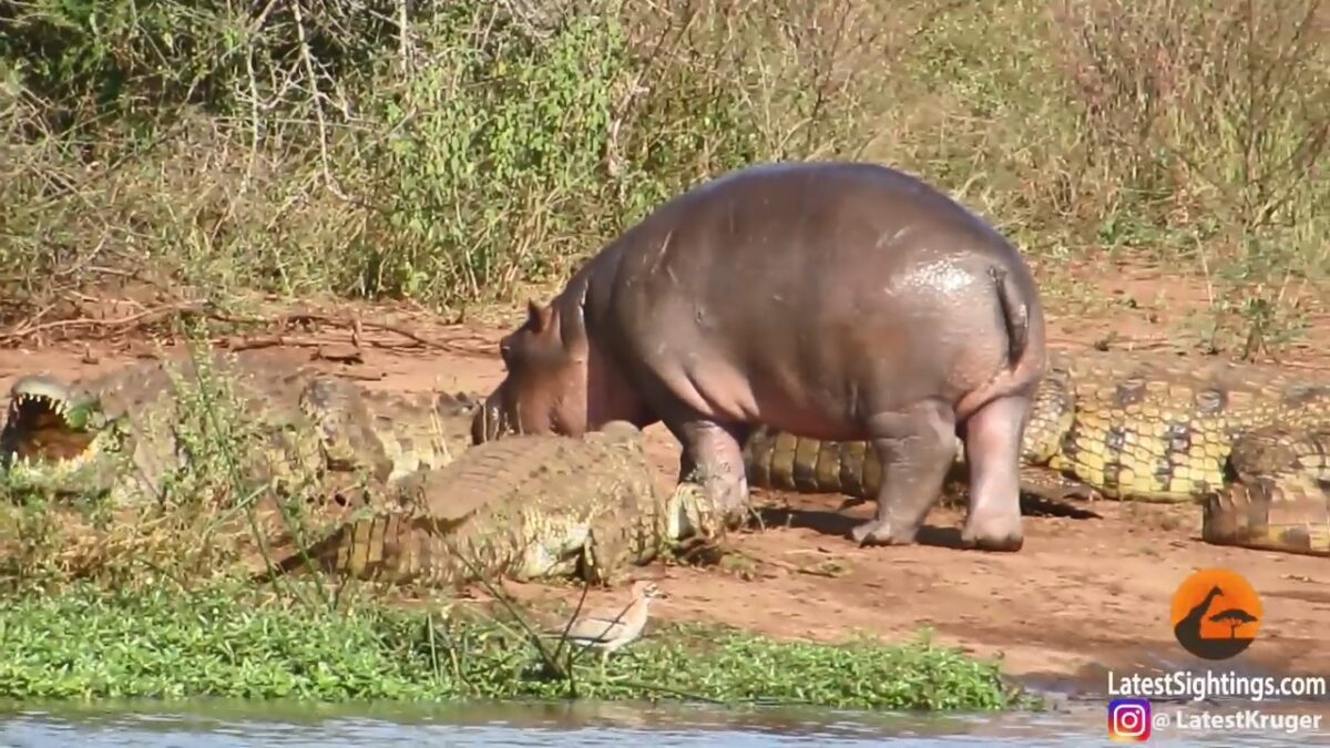 De jonge blije hippo is nergens bang voor en geeft zero fucks... al is die chagrijnige buffel wel groot. Mamaaaa!