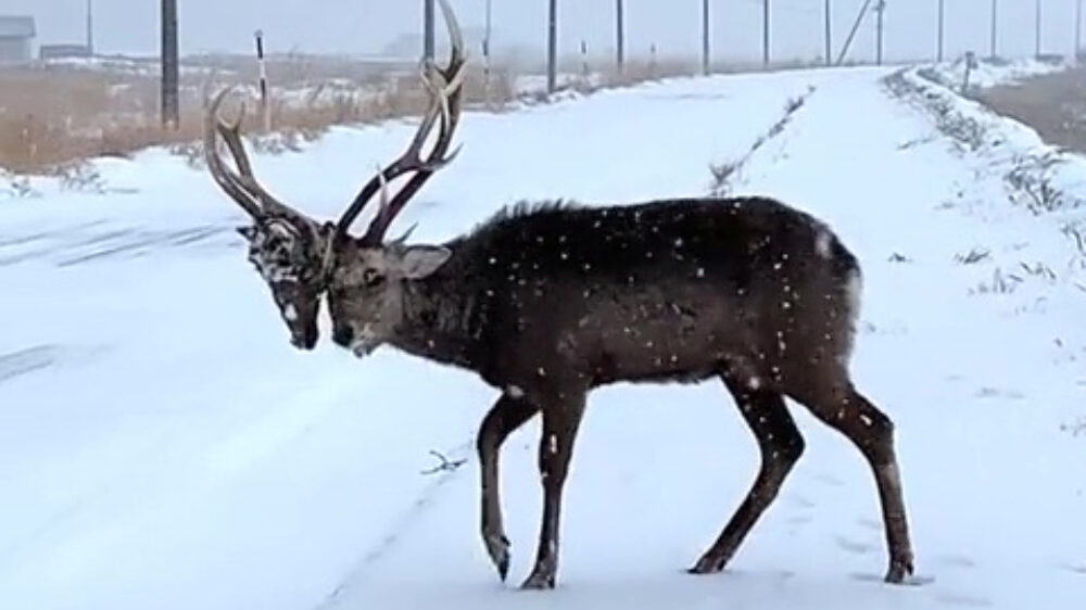 Hert draagt zijn laatste tegenstander als trofee op zijn hoofd