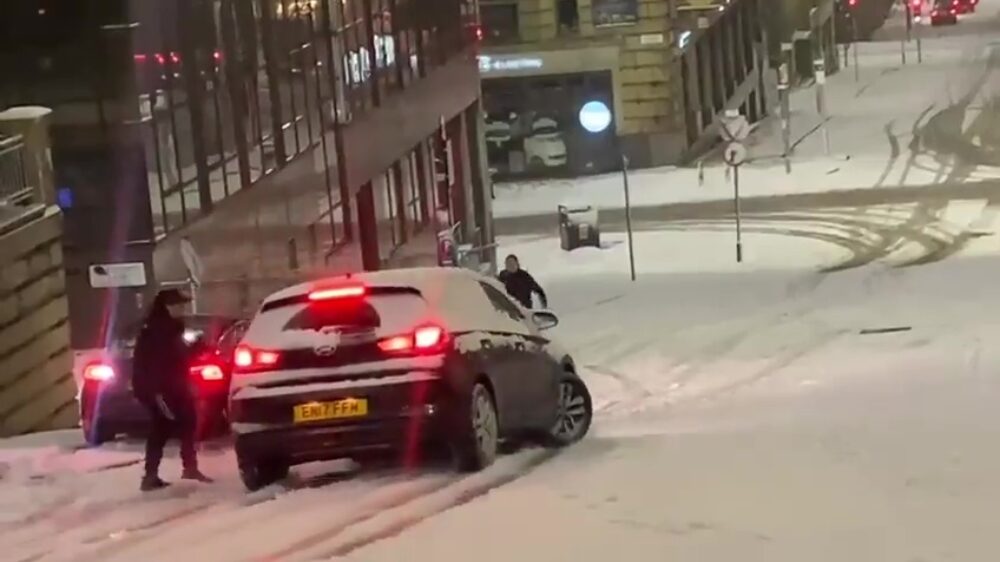 Remmen op een gladde en steile weg valt nog niet mee