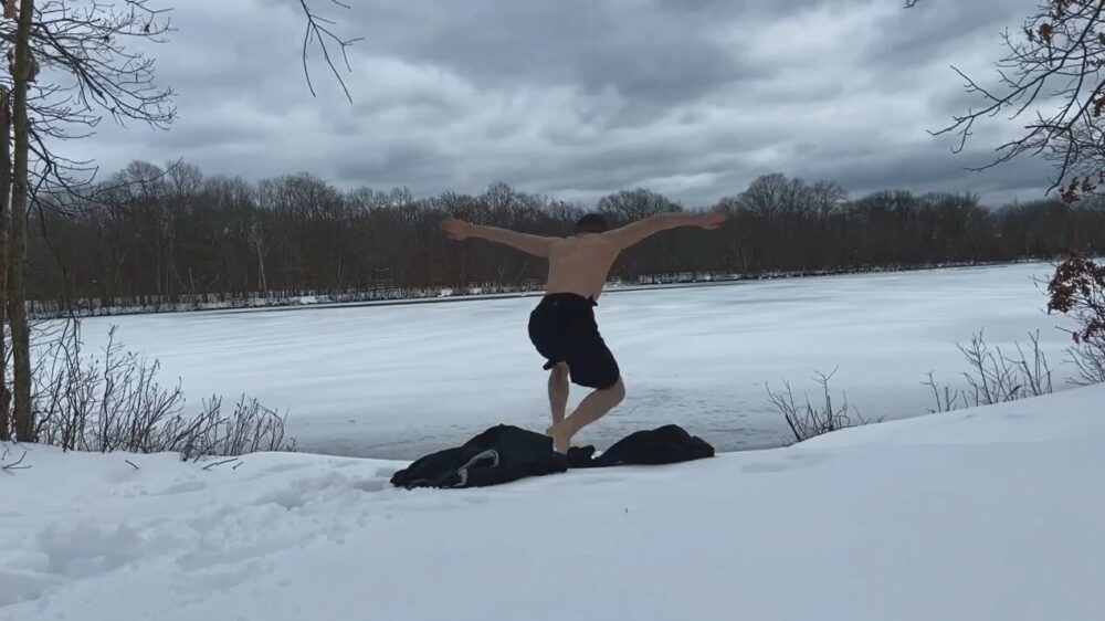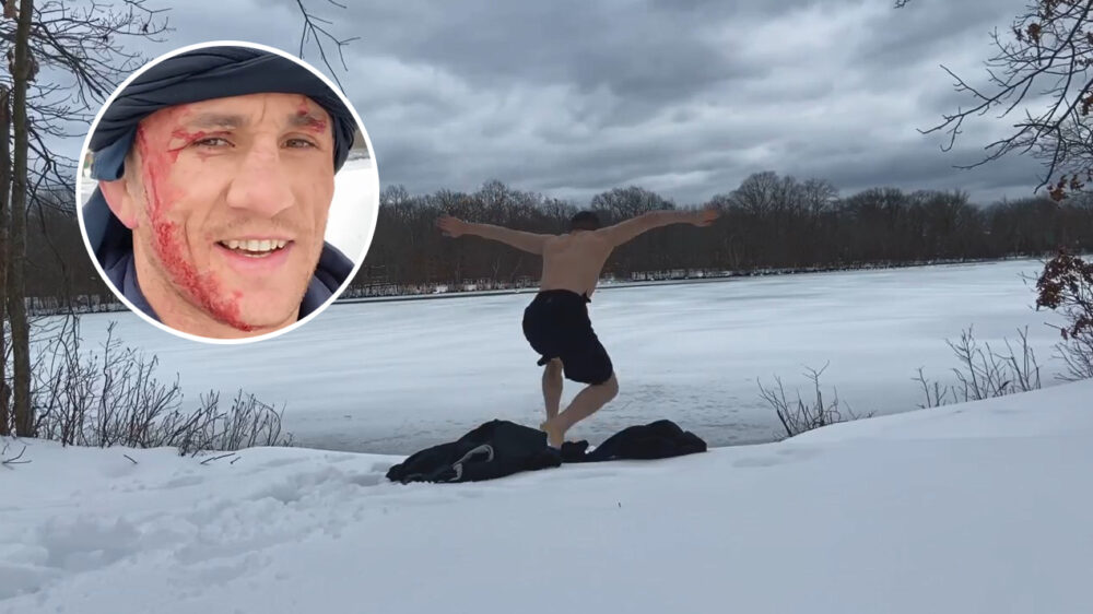 De in Georgië geboren UFC-vechtersbaas Merab Dvalishvili wilde na het trainen even lekker in een bevroren meer in New York badderen, maar het was iets minder verfrissend dan gehoopt; er lagen namelijk ook nog takken in het water die Merab met een TKO wisten te verslaan.