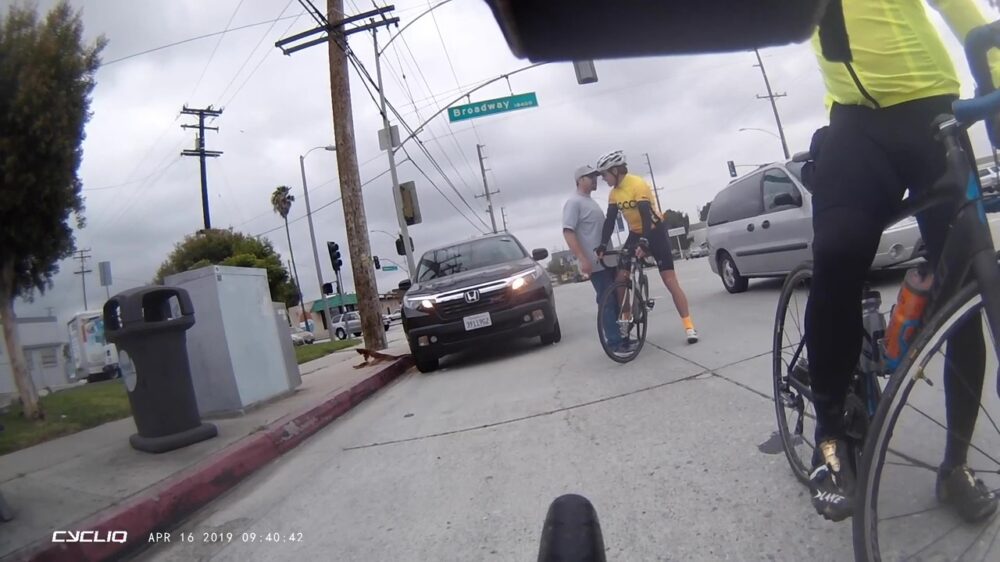 Amerikaanse Honda-bestuurder gaat full retard op groepje wielrenners