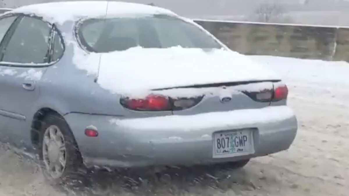 Voordeel van het winterweer: ook met de handrem erop kun je prima rijden Fails
