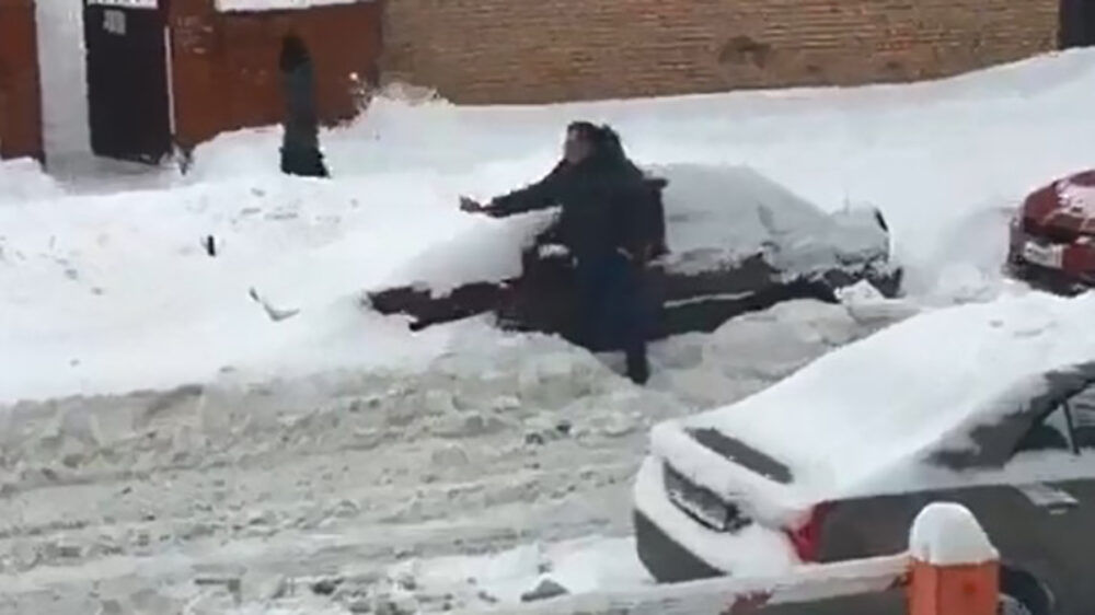 "Ik ben echt he-le-maal ingesneeuwd en heb er echt alles aan gedaan om mijn Lada te bevrijden. Tot morgen!"