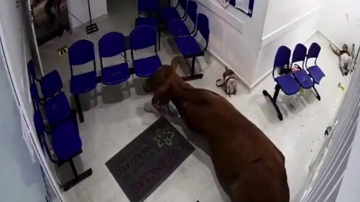 Colombiaanse stier dringt voor in de wachtkamer van de spoedeisende hulp