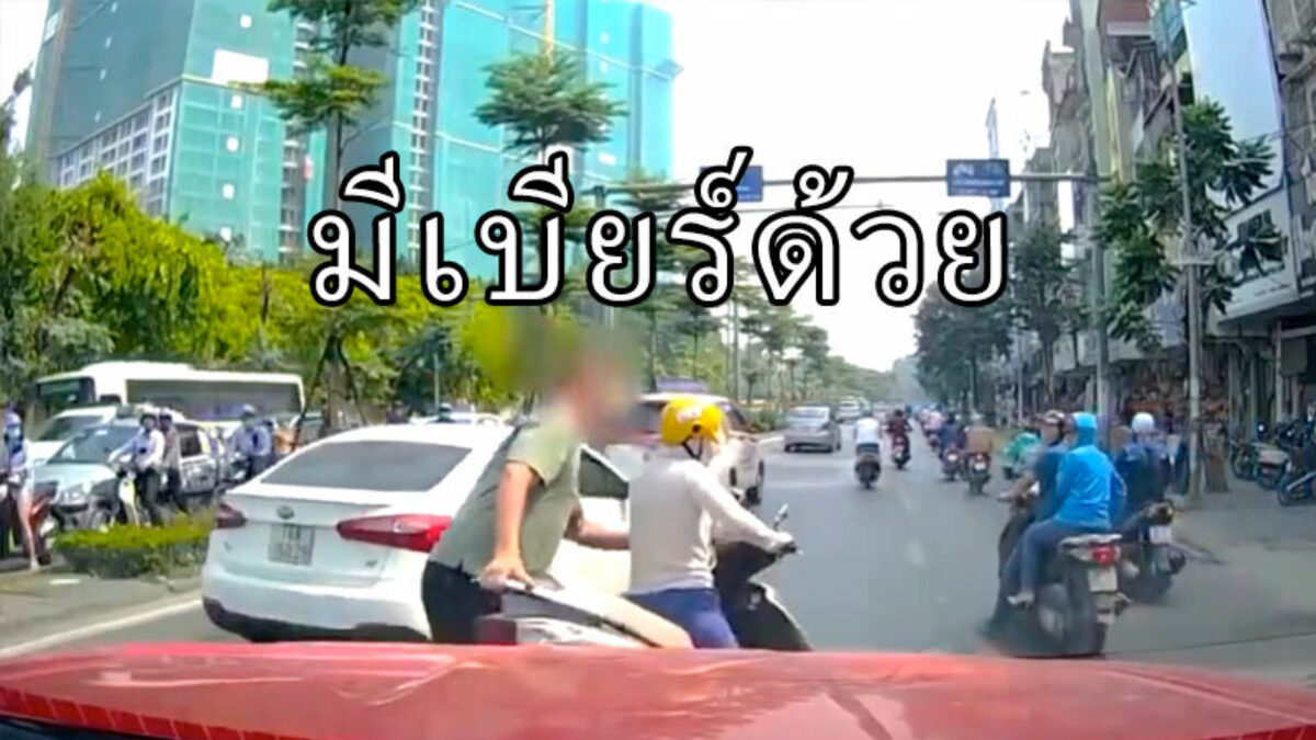 Waar kun je nou beter even je telefoontje beantwoorden dan midden op straat in Hanoi? Deze toerist snapte blijkbaar helemaal niets van deze Vietnamese cultuur en sleepte mevrouw met scooter en al van de weg af.