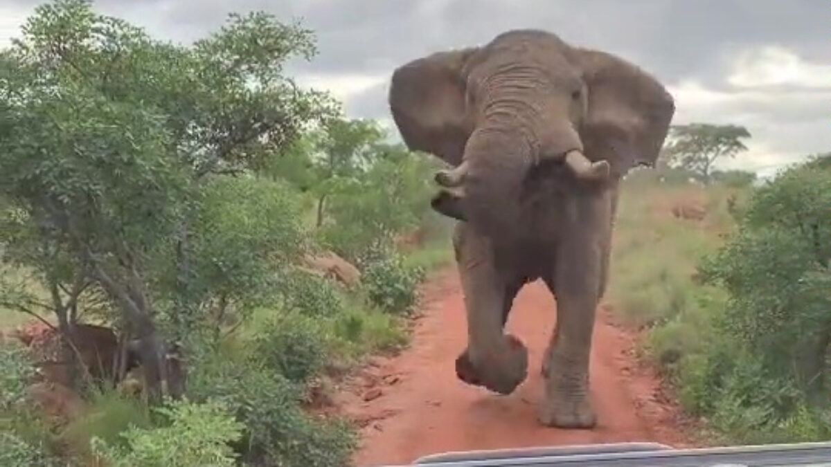 Zeg Lobbes, ik ben hier een beetje toeristen aan het rondleiden ja, die hebben geen zin in een agressieve duw van een olifant. Effe opbokken, wil je!