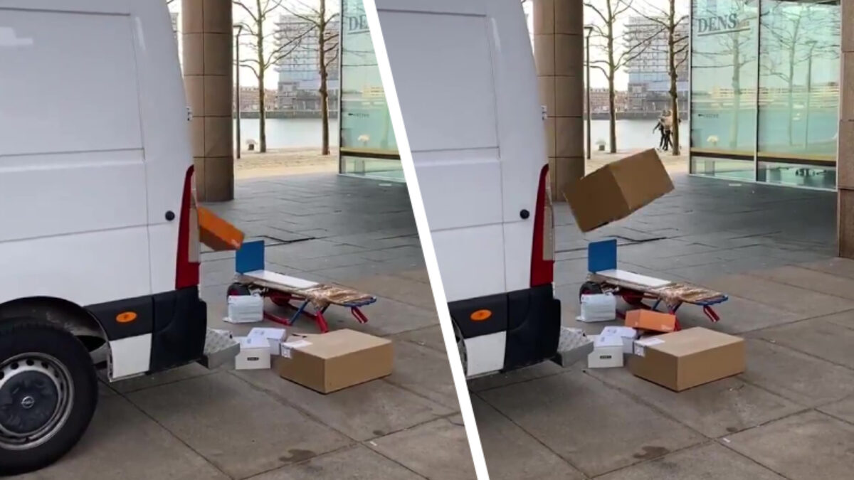 Hoe het kan dat je net bezorgde pakketje helemaal vol deuken en scheuren zit? Nou, simpel, dan is 'ie waarschijnlijk bezorgd door deze PostNL-medewerker. Bianca Toeps uit Rotterdam betrapte de beste man toen hij tientallen pakketjes uit zijn bus pleurde en ze daar rustig liet liggen.