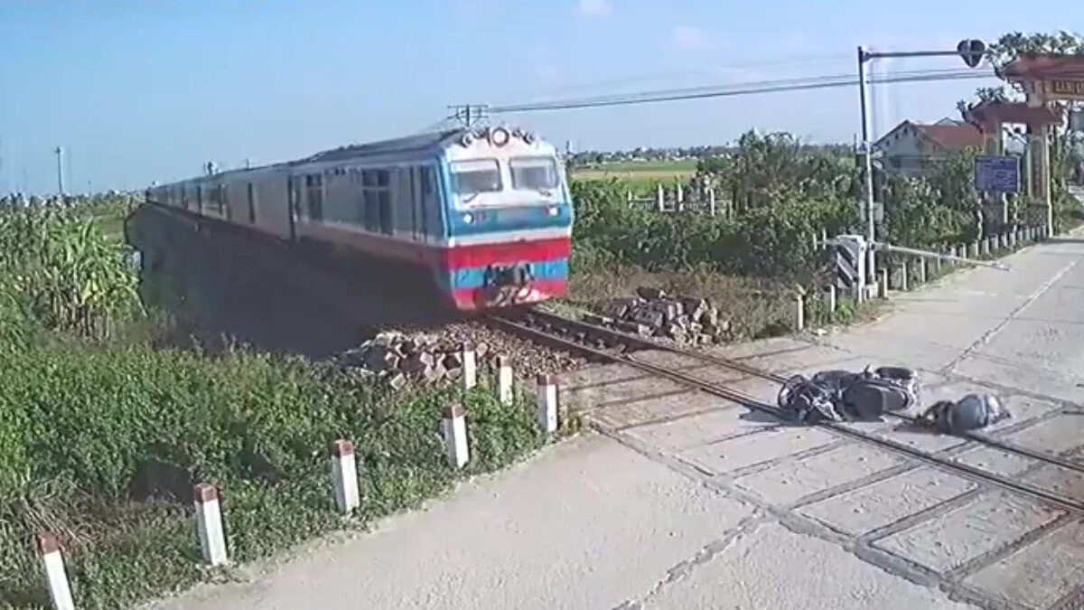 Gevallen motorrijder maakt van veel te dichtbij kennis met een Vietnamese trein