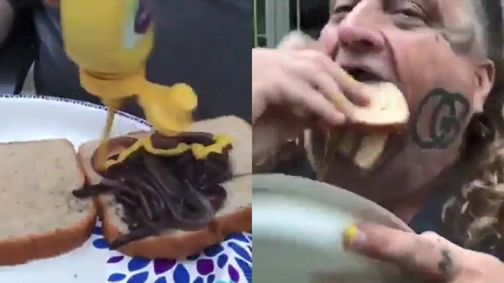 Meesterbrein Gucci Berry eet een voedzame wormsandwich als lunch Gekkies