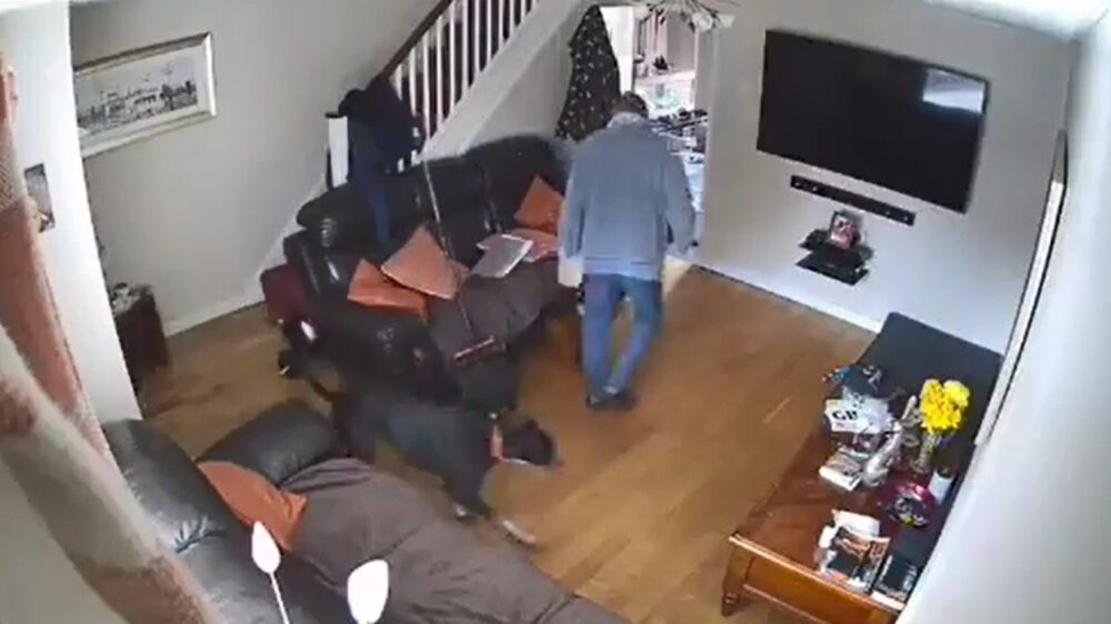 Hond richt woonkamer opnieuw in als hij zich de pleuris schrikt