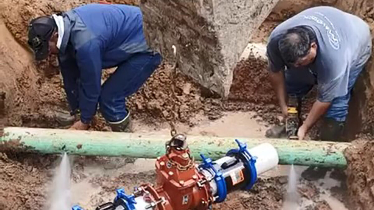 Deze mannen hadden het geluk om een riool/waterleiding open te breken en een ​​afsluiter te installeren. Horen we je nou klagen over jouw werk?