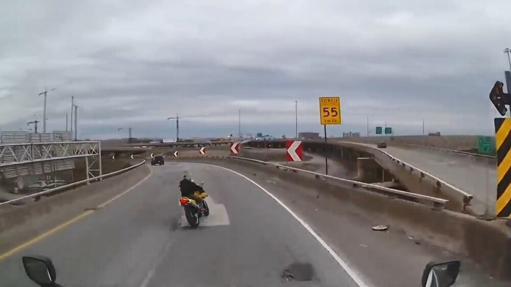 Oude doos: motorrijder haalt bochtje niet en vliegt over de vangrail