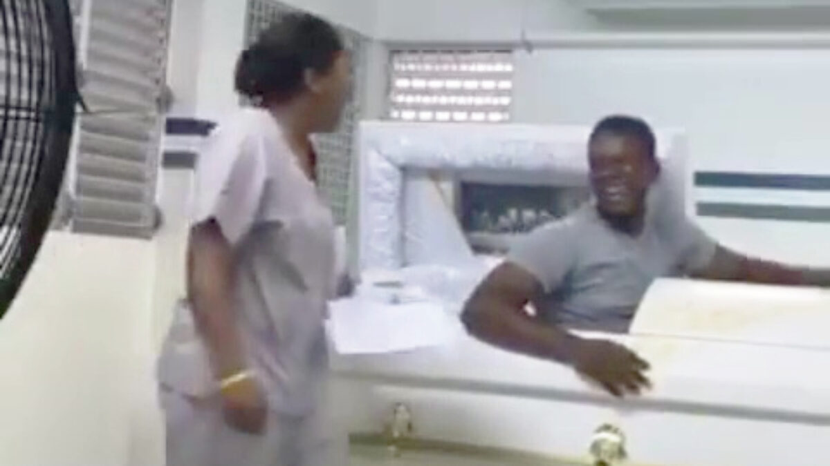 Werken in de uitvaartbranche kan verdomde heftig zijn en dus moet je soms even wat stoom afblazen. Door je collega te laten schrikken, bijvoorbeeld.