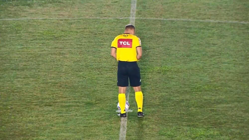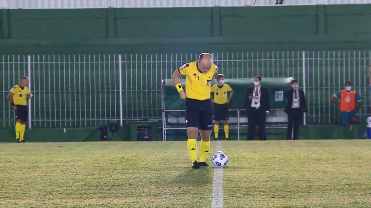 Net voor de aftrap van de bekerwedstrijd tussen Boavista en Goiá besluit scheidsrechter Denis da Silva Ribeiro Serafim het veld te zegenen door op de middenstip in zin broek te pissen. Laten we het houden op een zwakke blaas.