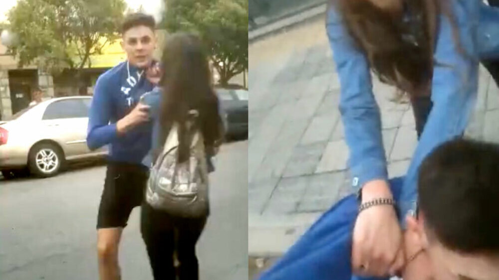Argentijnse vriendin gaat midden op straat volledig in de flipmode