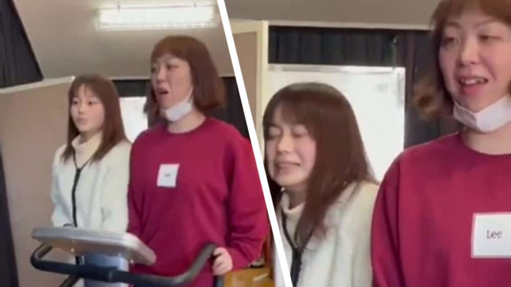 Gewoon een paar Aziatische dames op een trilplaat Fun