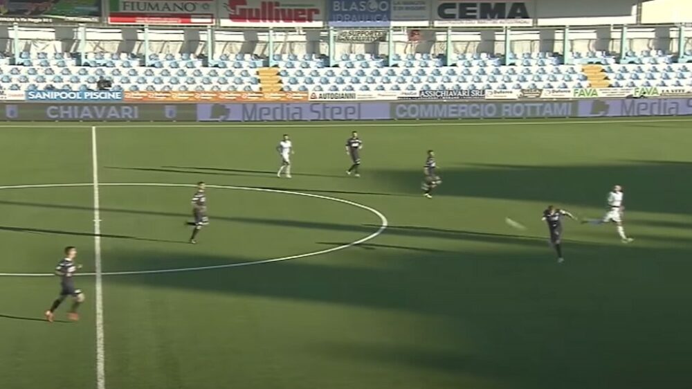 Michele Castagnetti scoort belachelijk mooi doelpunt vanaf eigen helft