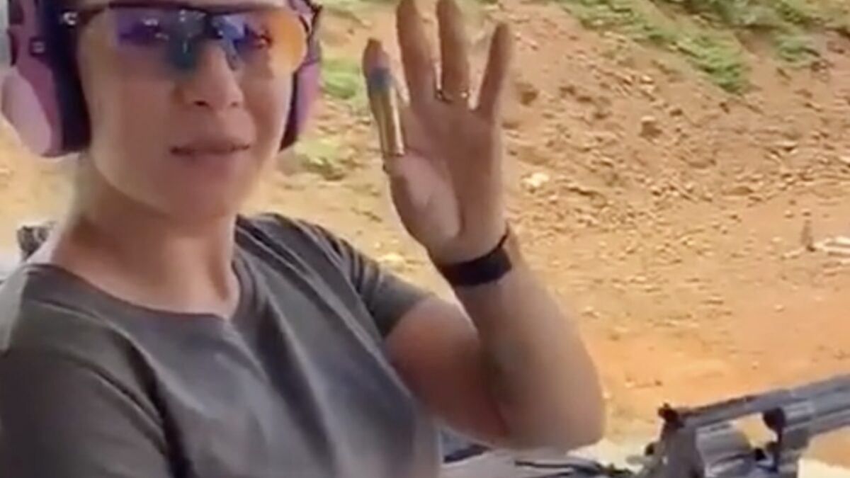 Tip: druk deze dame nooit een pistool in d'r handen Fails