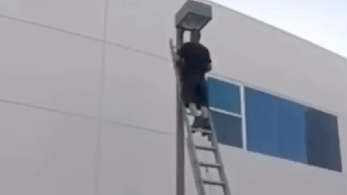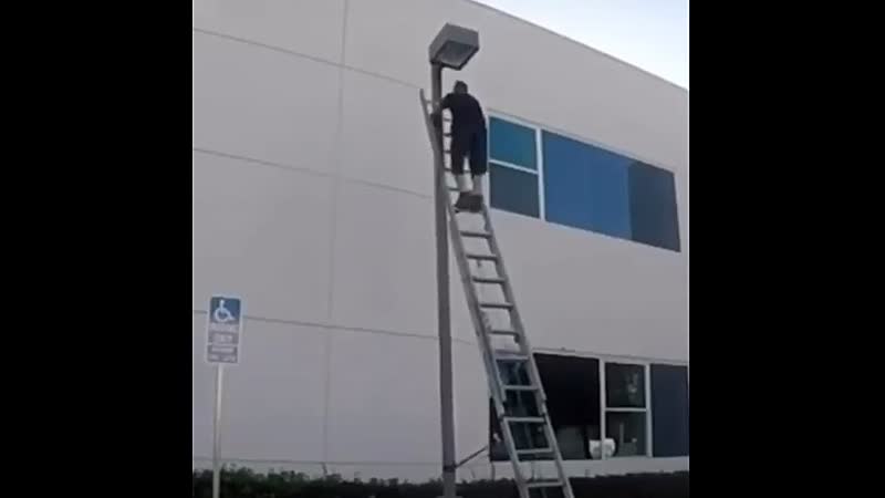 De lamp van een lantaarnpaal verwisselen is knap lastig Fails