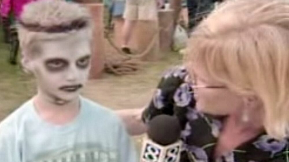 In 2007 werd Jonathan Ware geïnterviewd tijdens het Rose Festival in Portland, Oregon. De vraag ging over zijn zombie-schmink, maar blijkbaar had het ventje net een aantal schildpadden gezien en daarom kwam hij met dit legendarische antwoord. Blijft heerlijk.