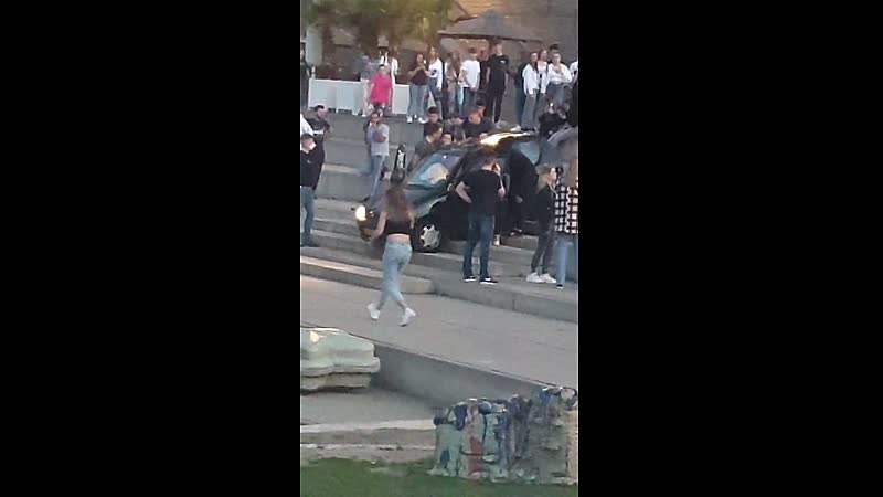 Op een eerder moment in Venlo: wat deze dame precies van plan was is op afstand een beetje lastig inschatten, maar dat ze een nat pak wilde halen staat buiten kijf.