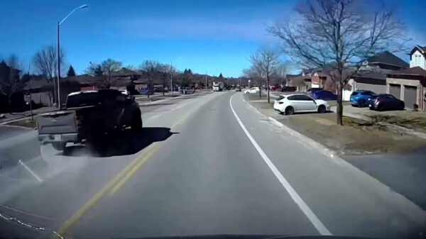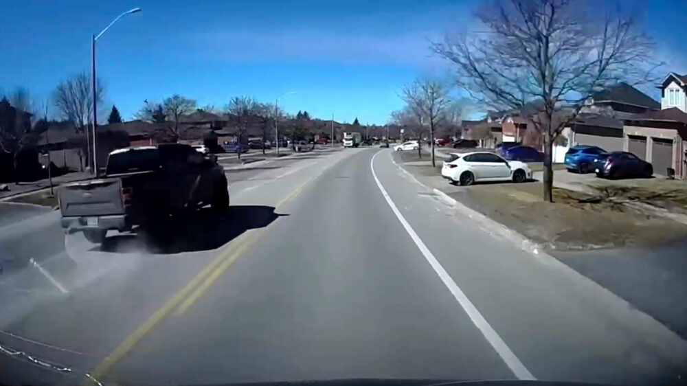 Idioot van het jaar jankt in zijn F-150 voorbij en sloopt complete woonwijk