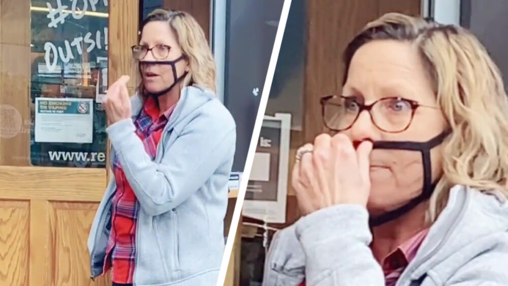 Ach gut, daar is #Karen weer, en dit keer heeft ze een manier gevonden om heerlijk bijdehand aan de mondkapverplichting te voldoen. Knappe meid hoor, hier heb je een lollie. Shut up Karen.