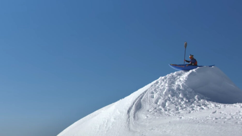 Een kajak gemaakt om mee te varen? Op water? Onzin, want als je het aan de extreme sporters van Red Bull overlaat blijkt dat je er prima mee de berg af kunt jagen.