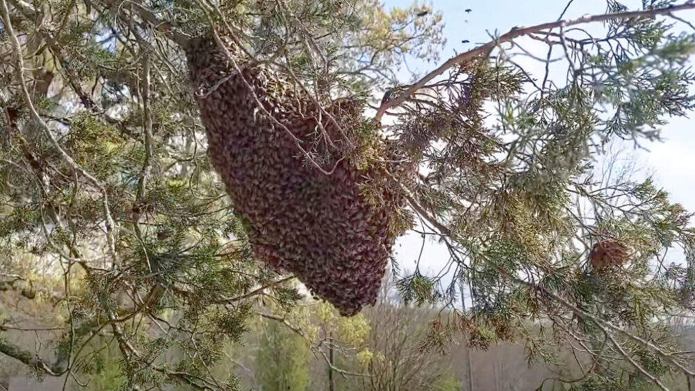 Bijenbaas laat zien hoe hij een enorme zwerm uit een boom verwijdert