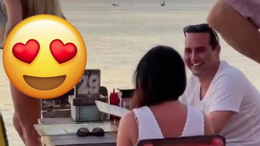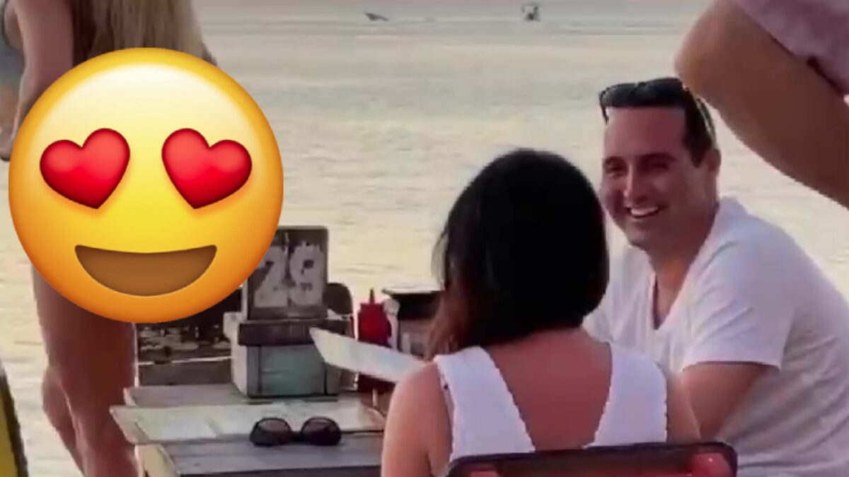 Tsjah, je kunt natuurlijk niet ongegeneerd zitten gluren als je met je vriendin aan het eten bent, maar deze knakker heeft wel écht zelfbeheersing hoor...