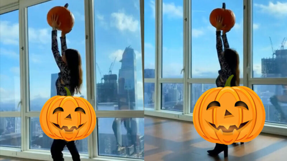 Waarom je in godsnaam in je kittige pakje op de 34e verdieping een pompoen boven je hoofd gaat houden zullen we waarschijnlijk wel nooit snappen, maar de wereld van influencers is simpelweg te complex voor ons plebs.