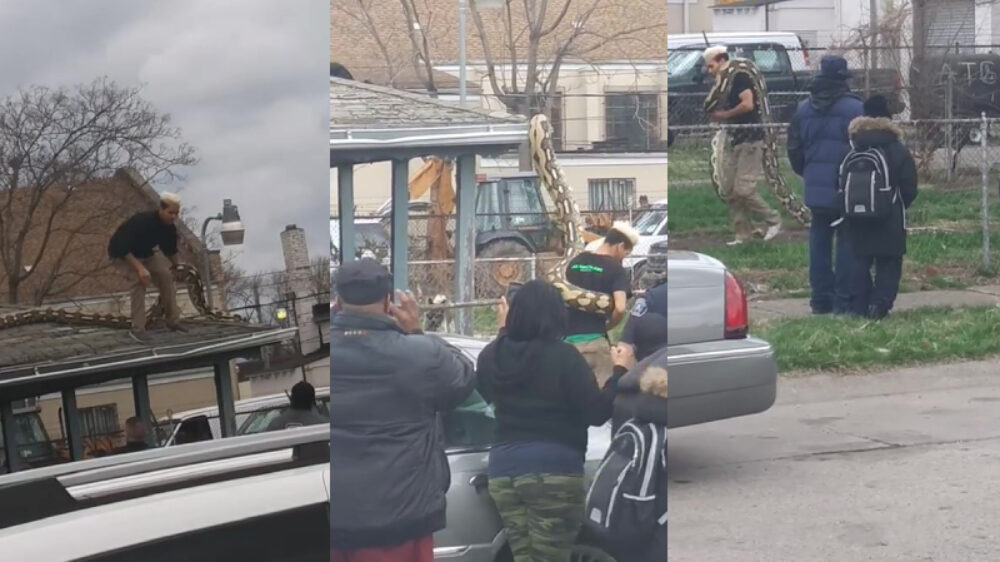Enorme ontsnapte slang wordt door z'n baasje van het dak gehaald Dieren