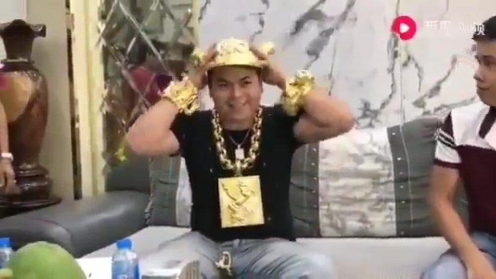 Met goud behangen Aziaat koopt ook nog even een gouden petje Lifestyle