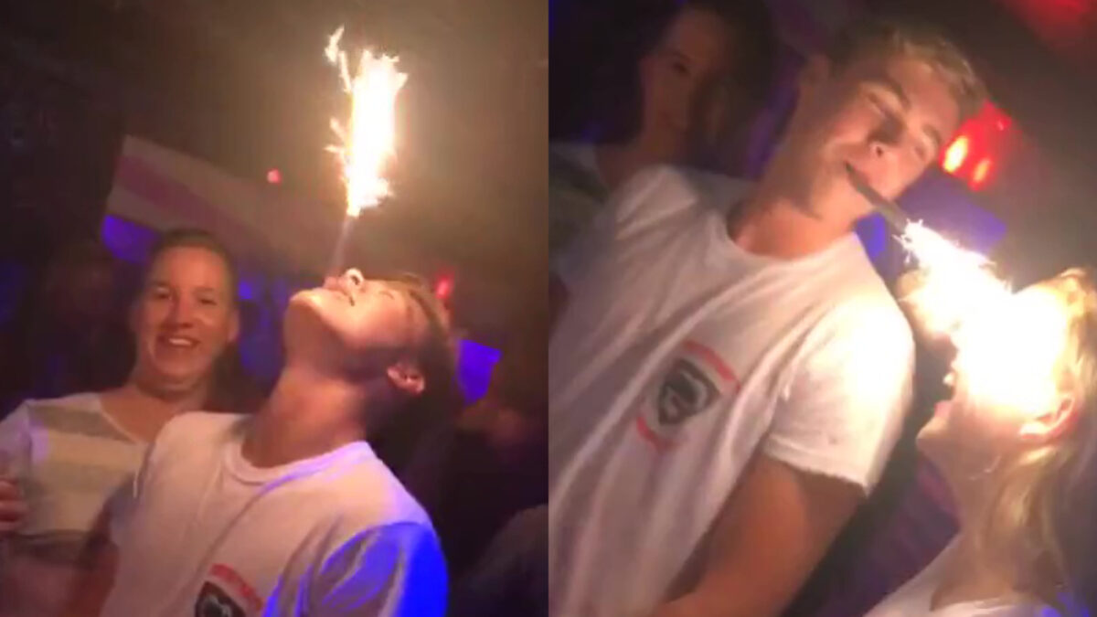 Enthousiaste chick krijgt een vuurwerkfonteintje in d'r bakkes Fails