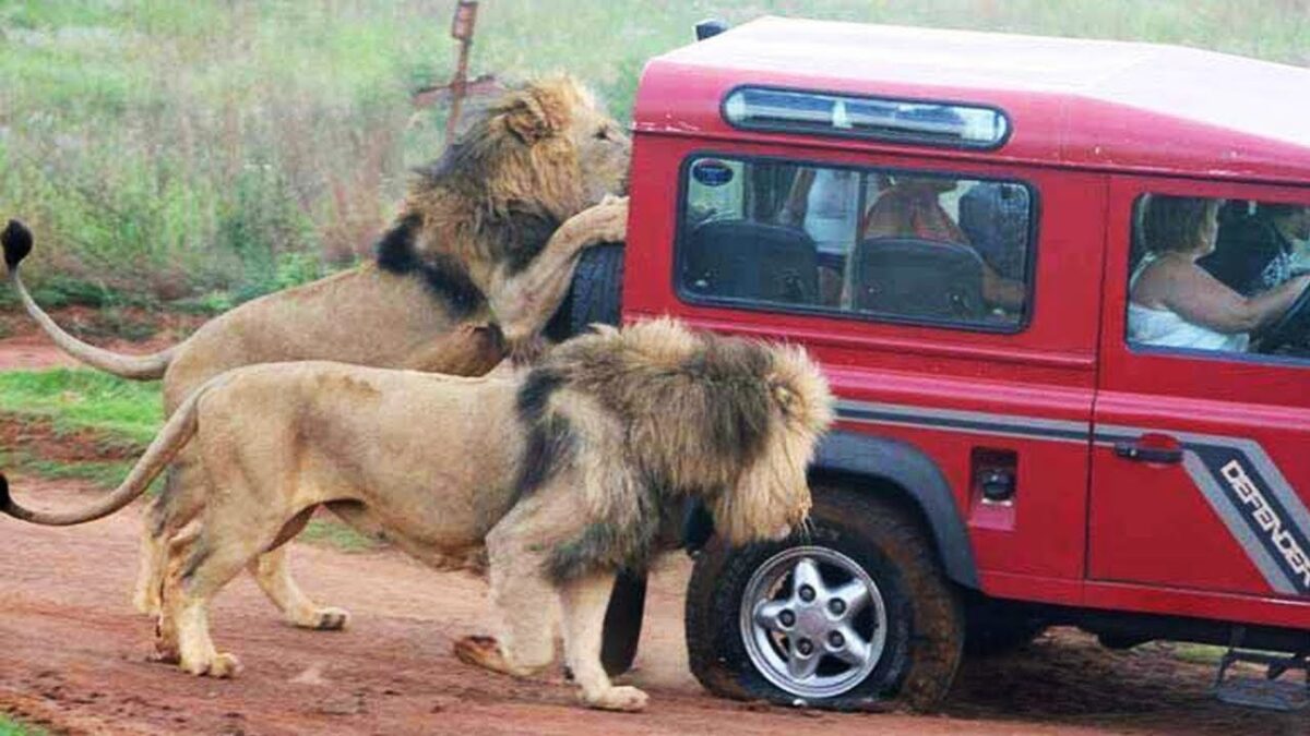 Olifanten en buffels die zich afreageren op auto’s, nijlpaarden jagen op jetski’s, geiten geven motorfietsen een kopstoot. Het is gewoon één groot beestenbende!