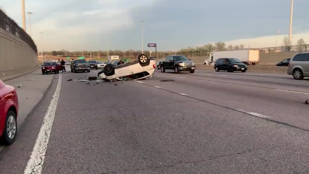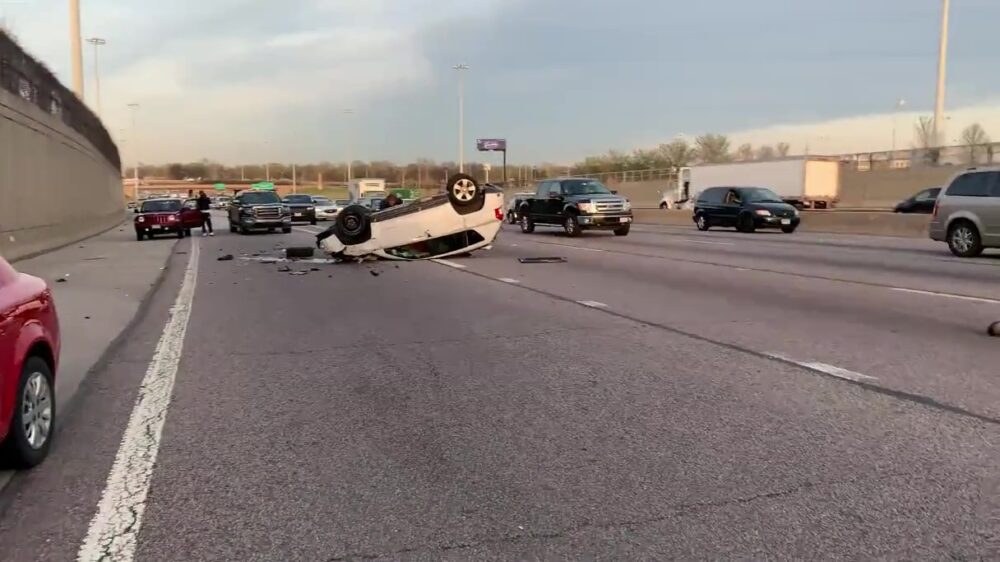Don't drink and drive, kids. Voordat je het weet hang je ondersteboven in je autogordel. Saillant detail: de bestuurder gaf de schuld aan de man in de zwarte SUV, ook al was hij zelf compleet van de wereld.